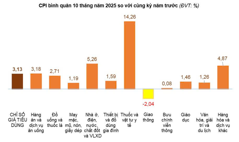 - Các yếu tố làm tăng CPI bình quân 10 tháng năm 2025