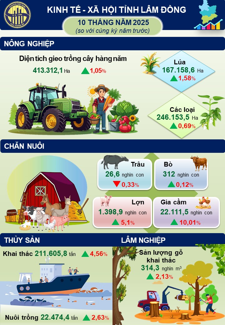 Tình hình kinh tế - xã hội tháng 10 và 10 tháng năm 2025 tỉnh Lâm Đồng