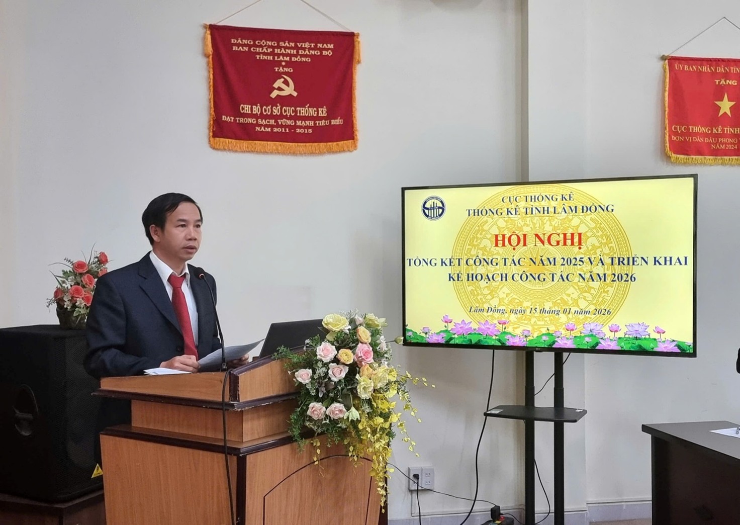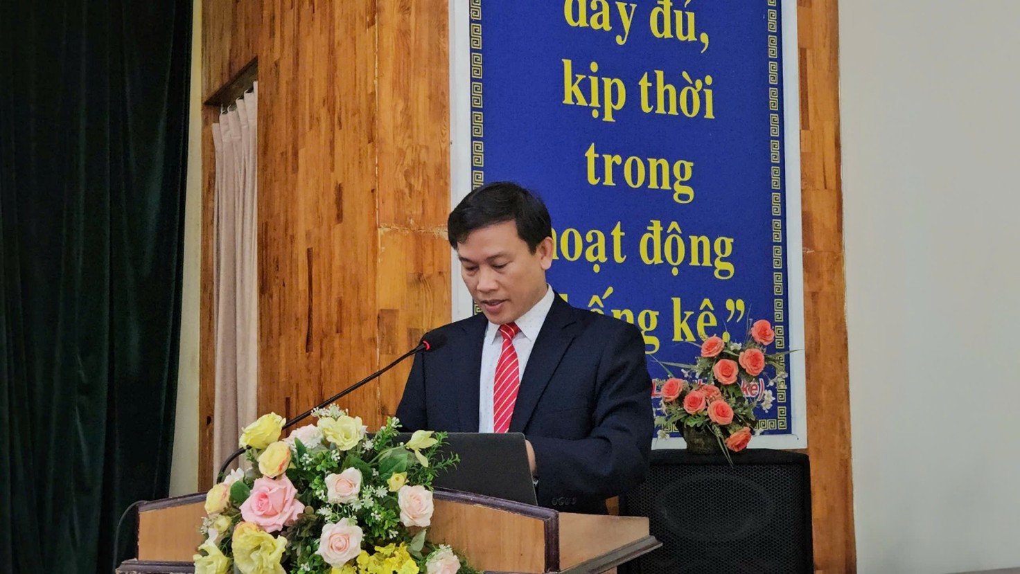 Đ/c Nguyễn Hoài Hải - Phó Trưởng Thống kê tỉnh báo cáo kết quả thực hiện nhiệm vụ năm 2025 và nhiệm vụ năm 2026