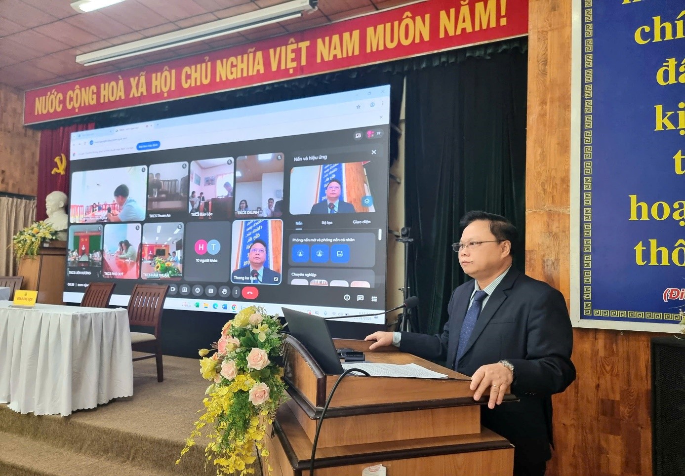 Tham dự trực tiếp tại điểm cầu trung tâm có các đồng chí Phó Trưởng Thống kê tỉnh; lãnh đạo và công chức các phòng thuộc cơ quan Thống kê tỉnh; lãnh đạo, công chức Thống kê cơ sở Đà Lạt. Hội nghị được kết nối trực tuyến đến 15 điểm cầu Thống kê cơ sở trên toàn tỉnh.