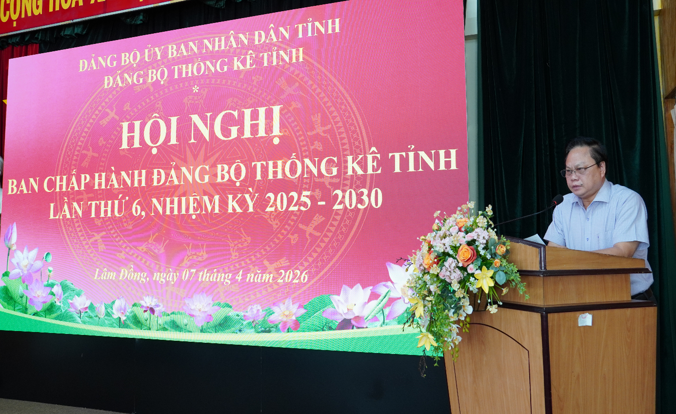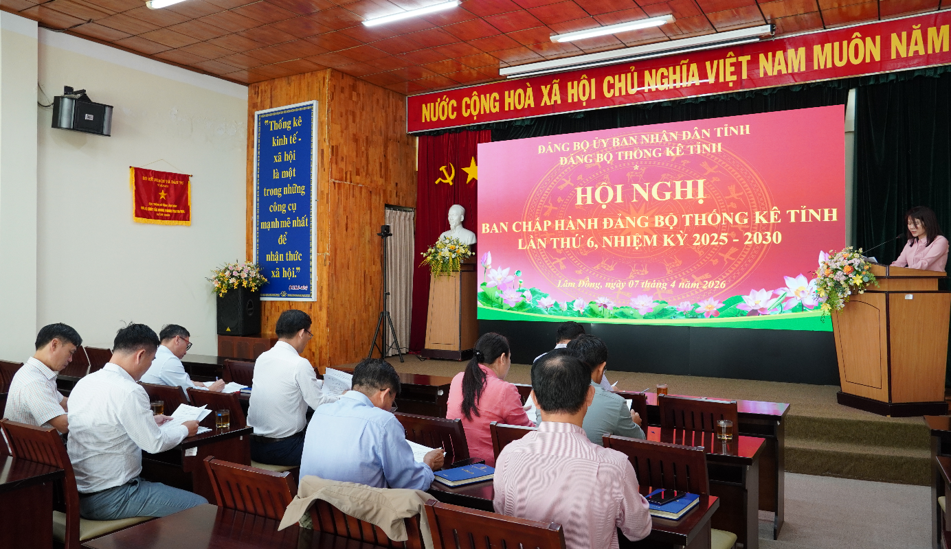 Sáng ngày 07/4/2026, Đảng bộ Thống kê tỉnh Lâm Đồng tổ chức Hội nghị Ban Chấp hành Đảng bộ Thống kê tỉnh lần thứ VI, nhiệm kỳ 2025-2030 nhằm đánh giá kết quả lãnh đạo thực hiện nhiệm vụ quý I năm 2026 và triển khai phương hướng, nhiệm vụ trọng tâm quý II năm 2026. Hội nghị do đồng chí Phạm Quốc Hùng, Bí thư Đảng ủy, Trưởng Thống kê tỉnh chủ trì, với sự tham dự của các đồng chí Ủy viên Ban Chấp hành Đảng bộ.
