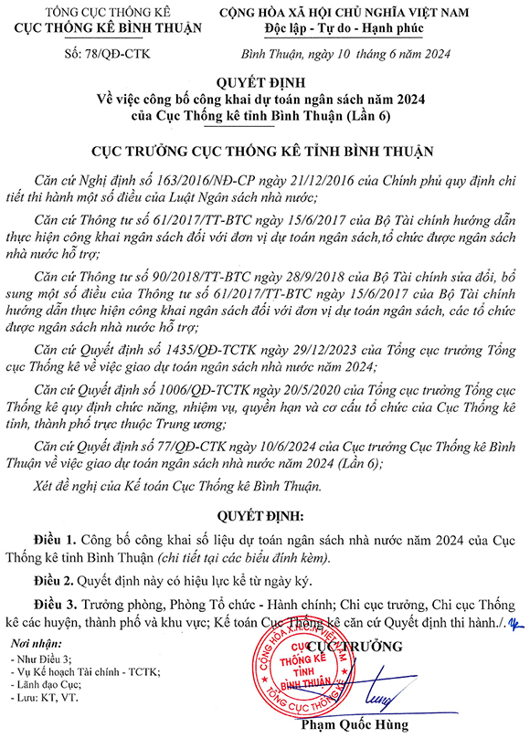 Quyết định số 78/QĐ-CTK ngày 10/6/2024