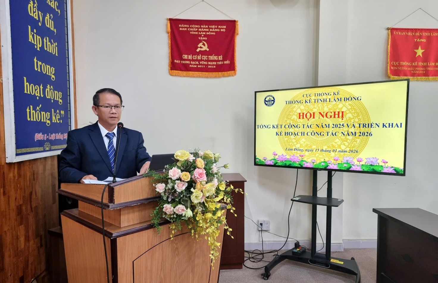 Tại Hội nghị, các đại biểu đã được theo dõi video clip tổng kết trực quan về các hoạt động nổi bật của Thống kê tỉnh năm 2025; nghe Báo cáo tổng kết công tác năm 2025 và phương hướng nhiệm vụ năm 2026.