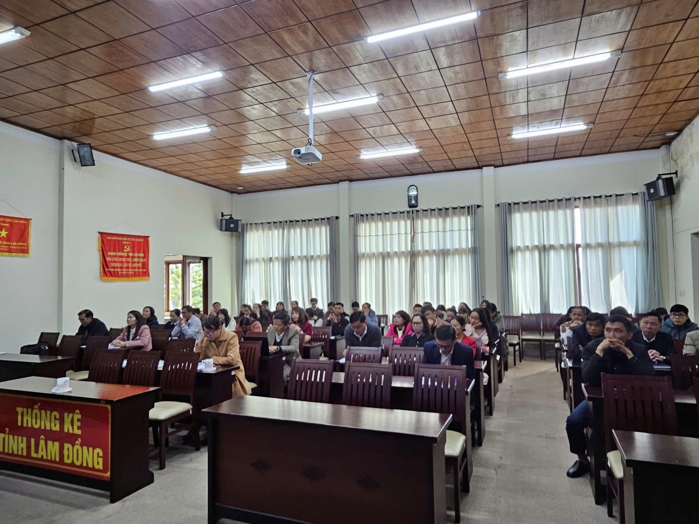 Tham dự trực tiếp tại điểm cầu trung tâm có các đồng chí Phó Trưởng Thống kê tỉnh; lãnh đạo và công chức các phòng thuộc cơ quan Thống kê tỉnh; lãnh đạo, công chức Thống kê cơ sở Đà Lạt. Hội nghị được kết nối trực tuyến đến 15 điểm cầu Thống kê cơ sở trên toàn tỉnh.