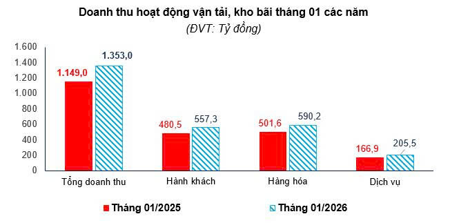 Trong tháng hoạt động vận tải kho bãi trên địa bàn tỉnh diễn ra ổn định và có xu hướng tăng so với tháng trước. Bên cạnh đó, do thời tiết thuận lợi và nhiều lễ hội, sự kiện du lịch diễn ra trong tháng, lượng hành khách và hàng hóa vận chuyển tăng, kéo theo doanh thu vận tải và dịch vụ kho bãi đều tăng. Doanh thu hoạt động giao thông vận tải, kho bãi trong tháng ước đạt 1.353,0 tỷ đồng tăng 3,58% so với tháng trước và tăng 17,76% so với cùng kỳ năm trước.