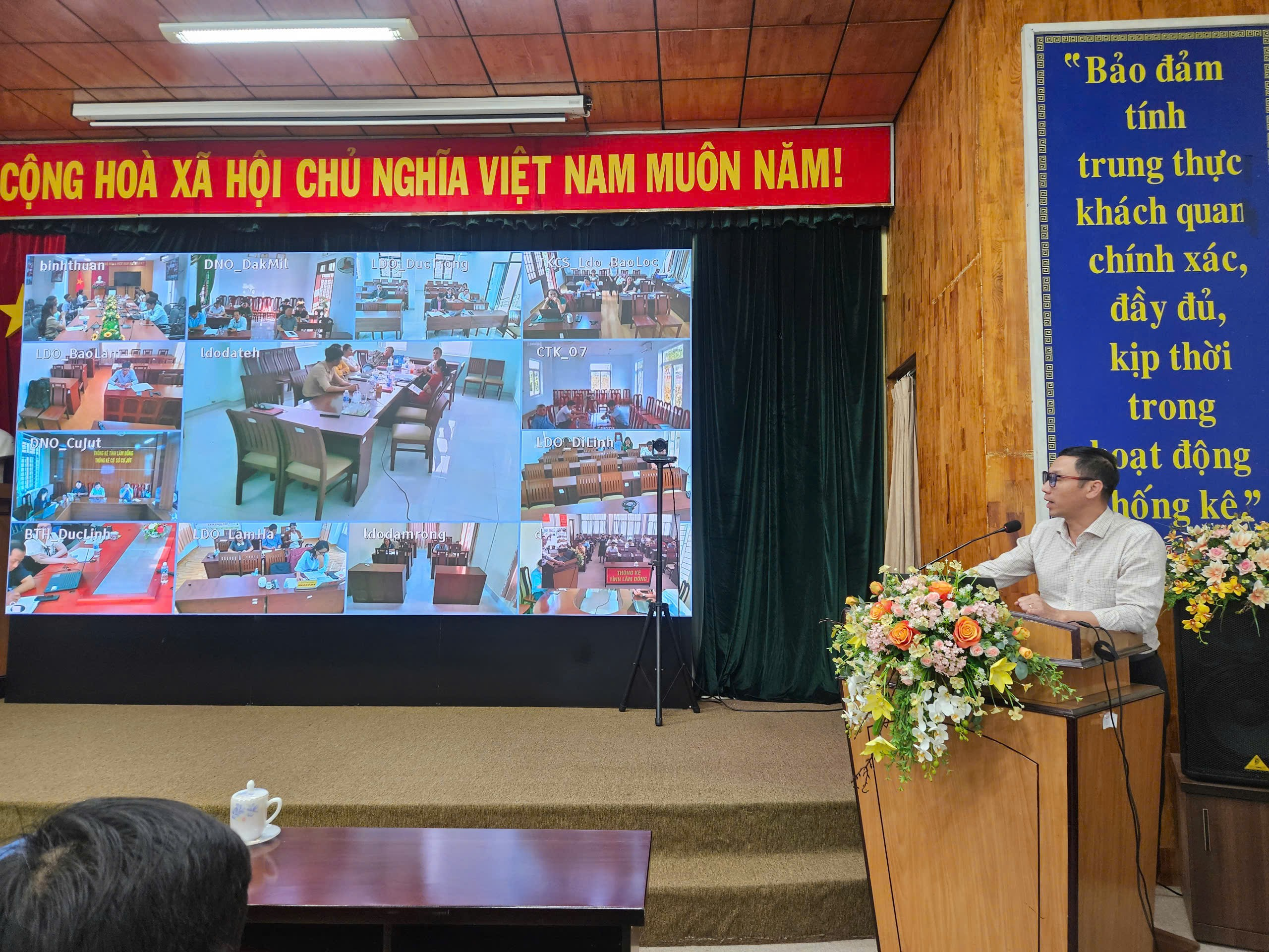 Đồng chí Phạm Quốc Hùng - Trưởng Thống kê tỉnh, Phó Trưởng ban Thường trực Ban Chỉ đạo Tổng điều tra kinh tế năm 2026 tỉnh Lâm Đồng chủ trì và chỉ đạo Hội nghị. Tham dự Hội nghị có các thành viên Ban Chỉ đạo, Tổ Thường trực giúp việc Ban Chỉ đạo cấp tỉnh; lãnh đạo các phòng nghiệp vụ; công chức các phòng Thống kê Công nghiệp và Xây dựng, Thống kê Dịch vụ và Giá; lãnh đạo, công chức Thống kê cơ sở Đà Lạt và các điểm cầu trực tuyến tại Thống kê cơ sở các xã, phường, đặc khu.
