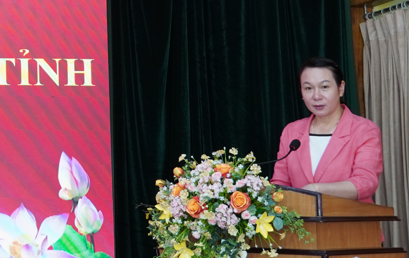 Đ/c Trương Thị Mộng Di, Phó Bí thư Đảng ủy, Phó trưởng Thống kê tỉnh báo cáo tình hình triển khai